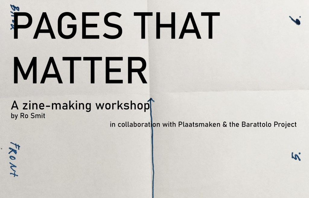 PAGES THAT MATTER is a Zine making workshop in collaboration with The Barattolo Project. The first edition was held during Some Days Some Arts 23, and the second edition was given in colaberation with and at PlaatsMaken, Arnhem.