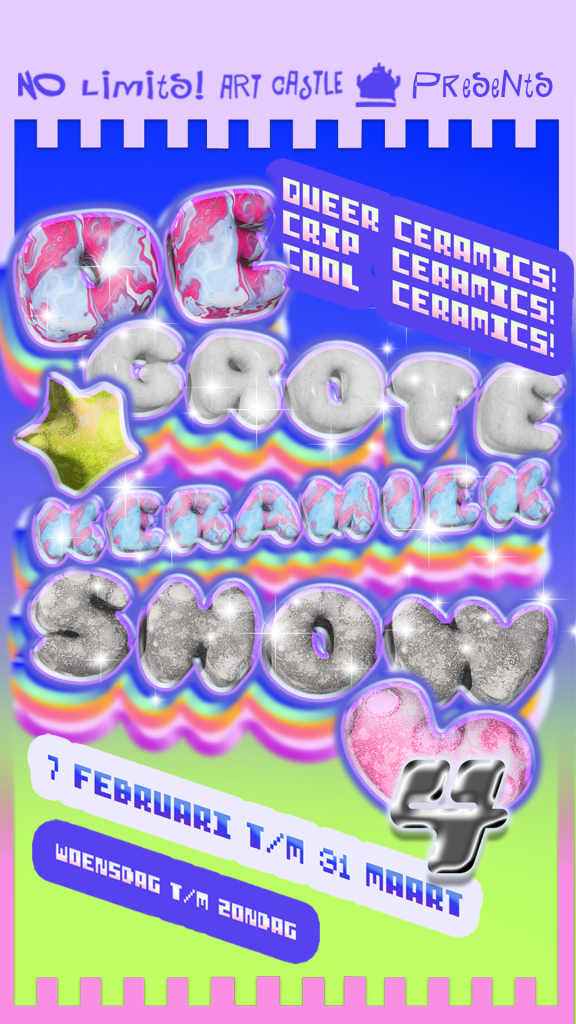 Yeah! It is time again for the Great Ceramics Show! This is the 4th edition of the annually recurring exhibition ‘The Great Ceramics show in which No Limits! Art Castle brings together artists with and without disabilities to express themselves with ceramics in complete freedom. Among the artists represented by No Limits! Art Castle, ceramics is a frequently used medium. Clay allows them room for free expression, but can also have a delaying or grounding effect. At the same time, it teaches them in a gentle way how to deal with unpredictability and disappointment. For clay has a will of its own; an object sometimes looks very different once it has been fired. This year we have an abundance of queer ceramics.