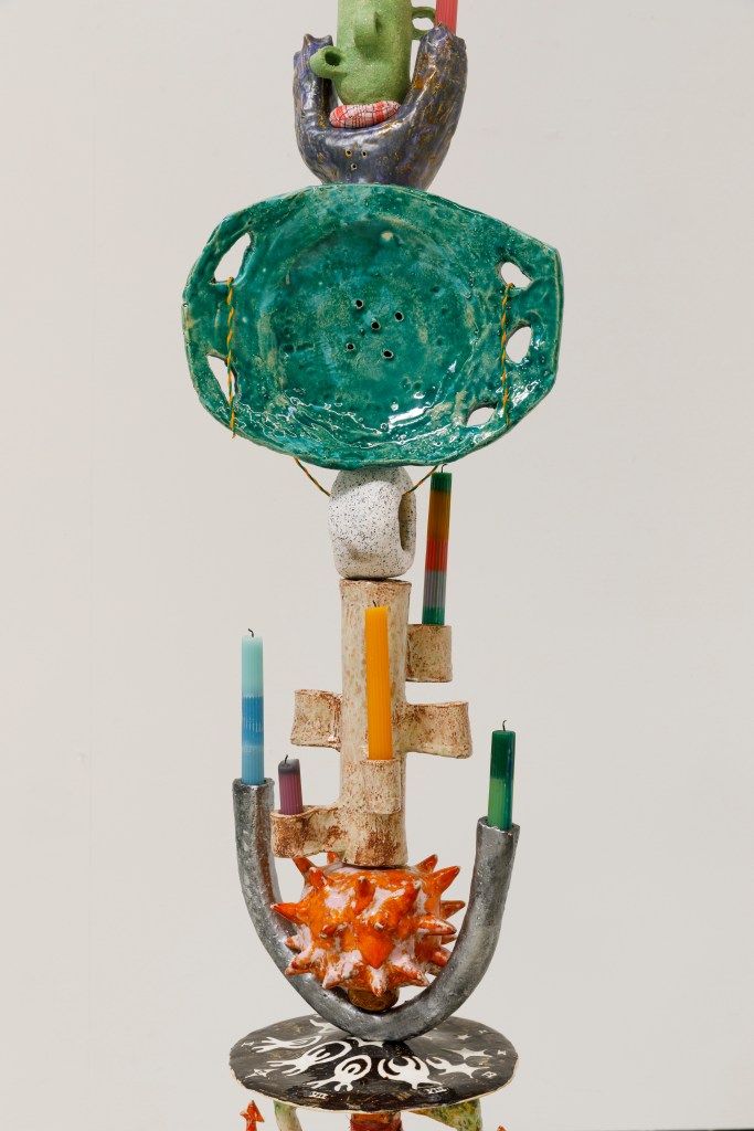 The stakes are constructed in a way where the ceramic objects can be reassembled in lots of different ways over and over again, some work as objects on their own, for example candle holders but function is not needed to be included and cared for.